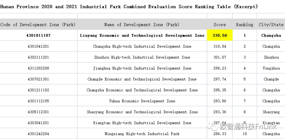 La zona di sviluppo economico e tecnologico di Liuyang, dove si trova FN-Link Technology Limited, ha vinto il primo posto con il punteggio più alto di 330,56.