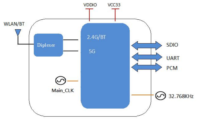 Supporta l'interfaccia a bassa potenza SDIO3.0 per l'interfaccia WLAN e UART / PCM per