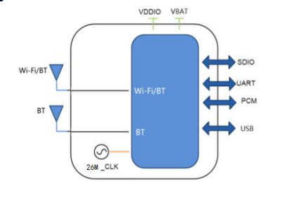 Supporta USB2.0, SDIO 2.0, UART, PCM.